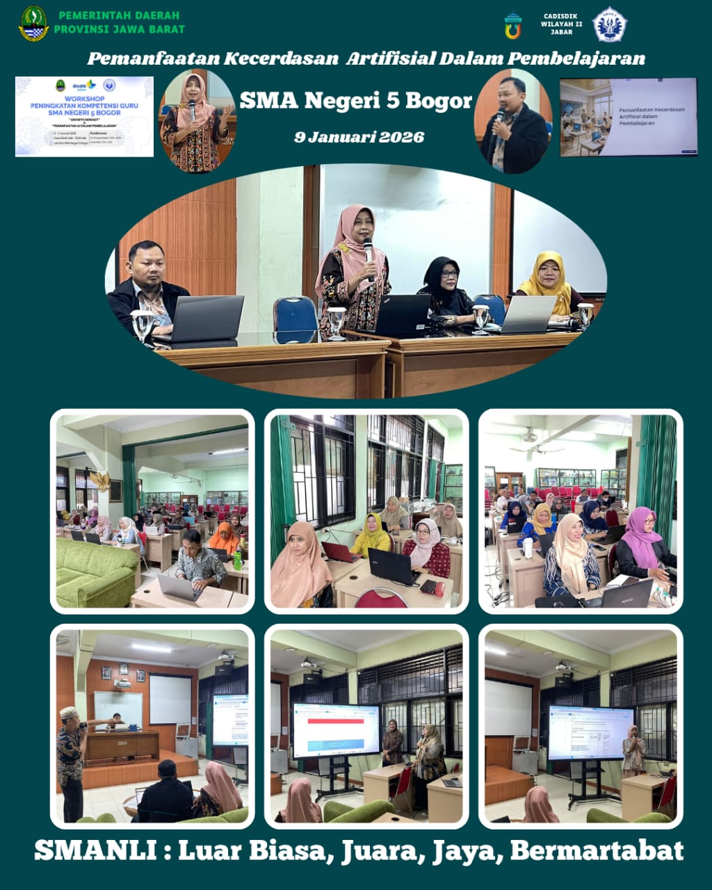 Jumat, 9 Januari 2026, telah dilaksanakan kegiatan Workshop Pemanfaatan Kecerdasan Artifisial dalam Pembelajaran yang bertempat di SMAN Negeri 5 Bogor. Kegiatan ini diikuti seluruh pendidik dan tenaga kependidikan yang berlangsung mulai pukul 08.00 hingga 15.00 WIB